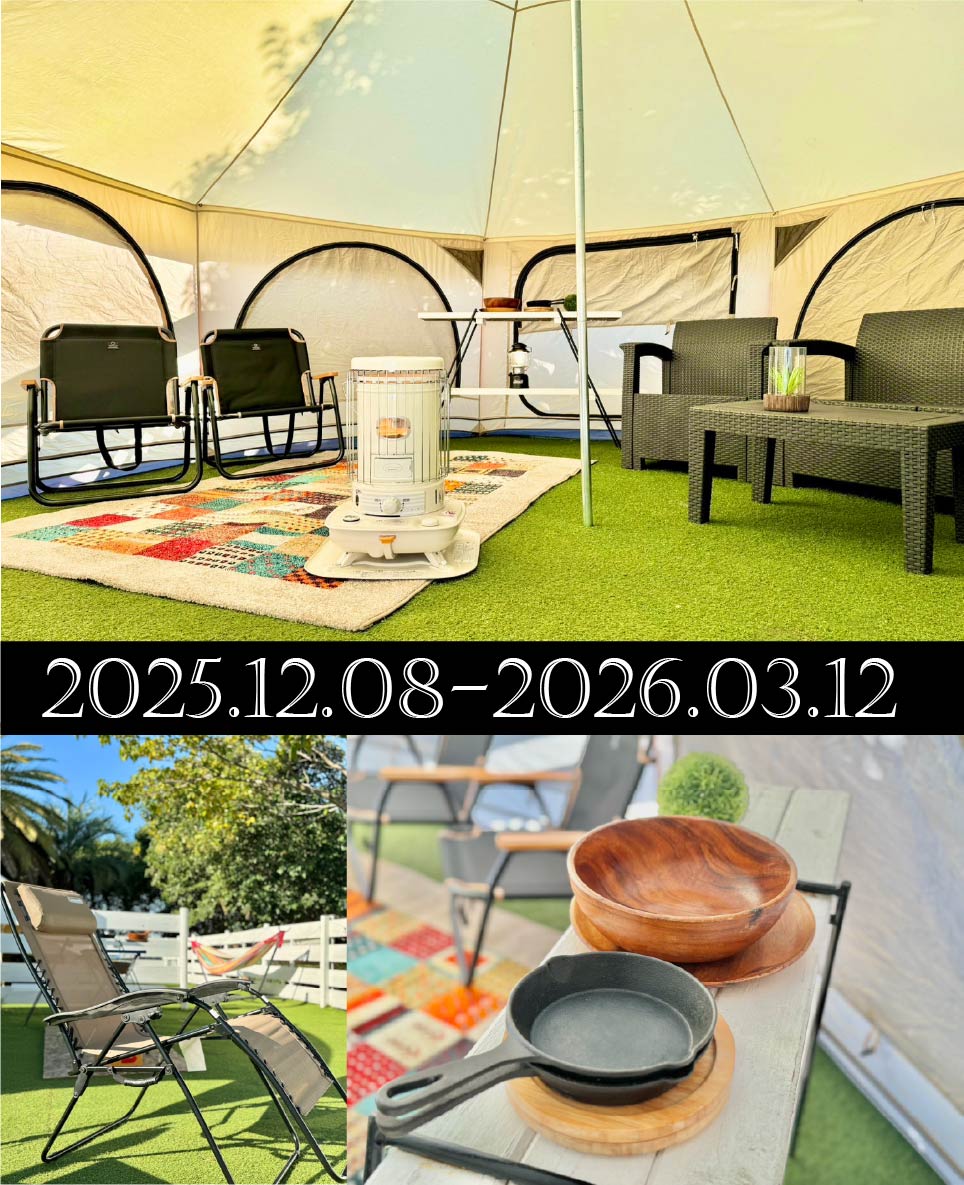 まもなく冬季限定のあったかデイキャンププランをリリース致します。例年人気の暖房完備プラン!今しばらくお待ちください。